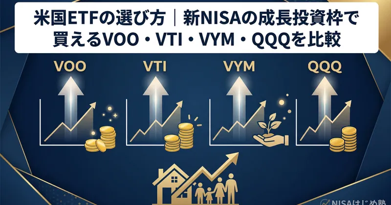 米国ETFの選び方|新NISAの成長投資枠で買えるVOO・VTI・VYM・QQQを比較